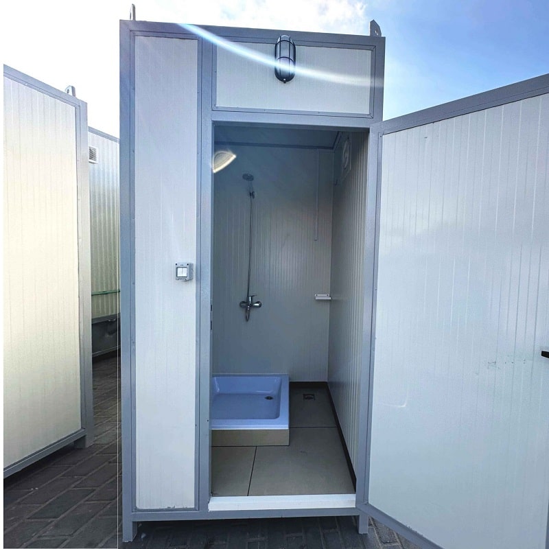 کانکس حمام کوچک با ابعاد 1.2 در 1.2 متری، مناسب برای استفاده های کارگاهی، بین راهی اربعین، باشگاه های ورزشی، مساجد، پارکینگ ها و … کف فایبرگلاس مجزا برای جلوگیری از تماس آب با کف کانکس.